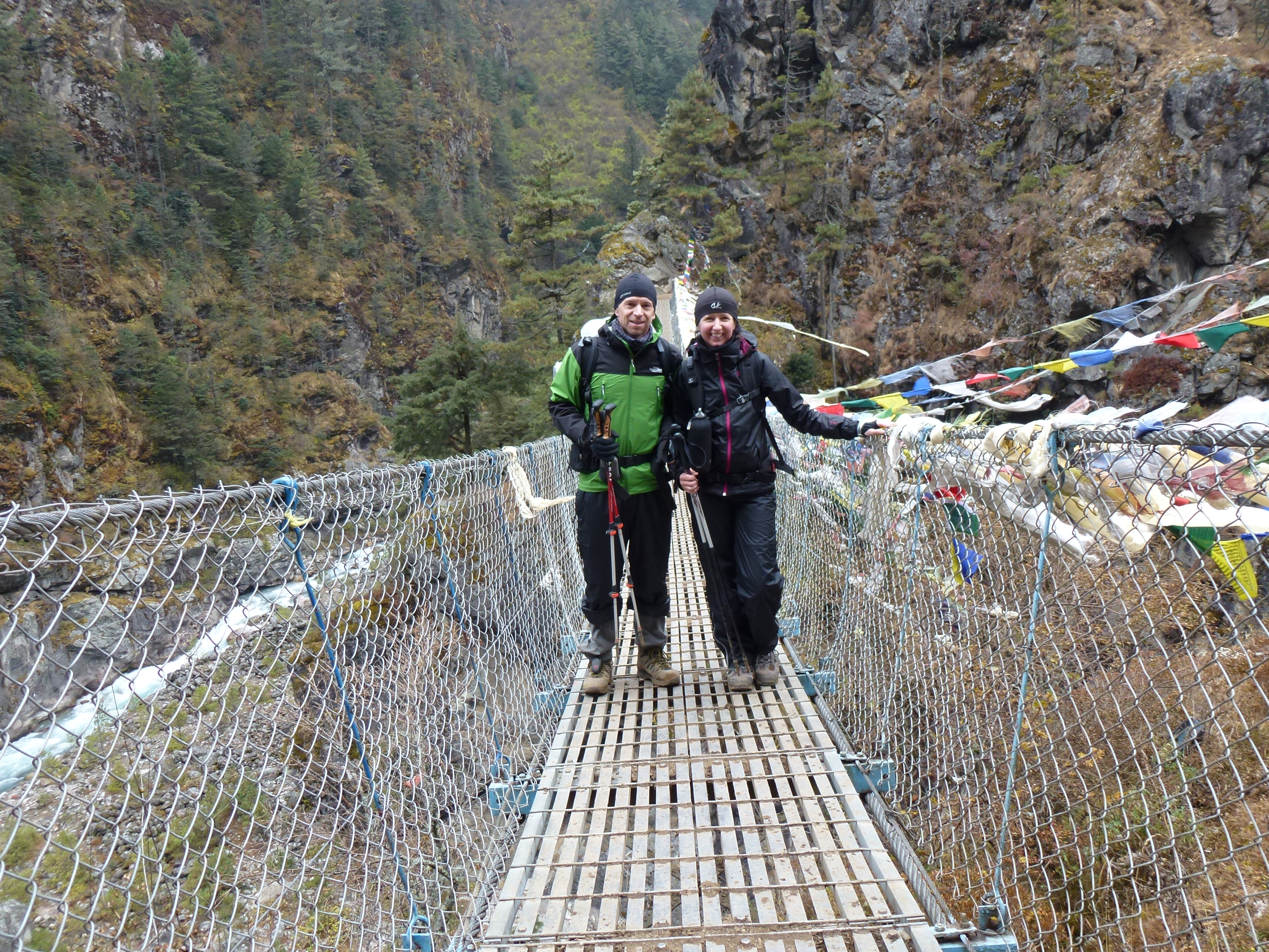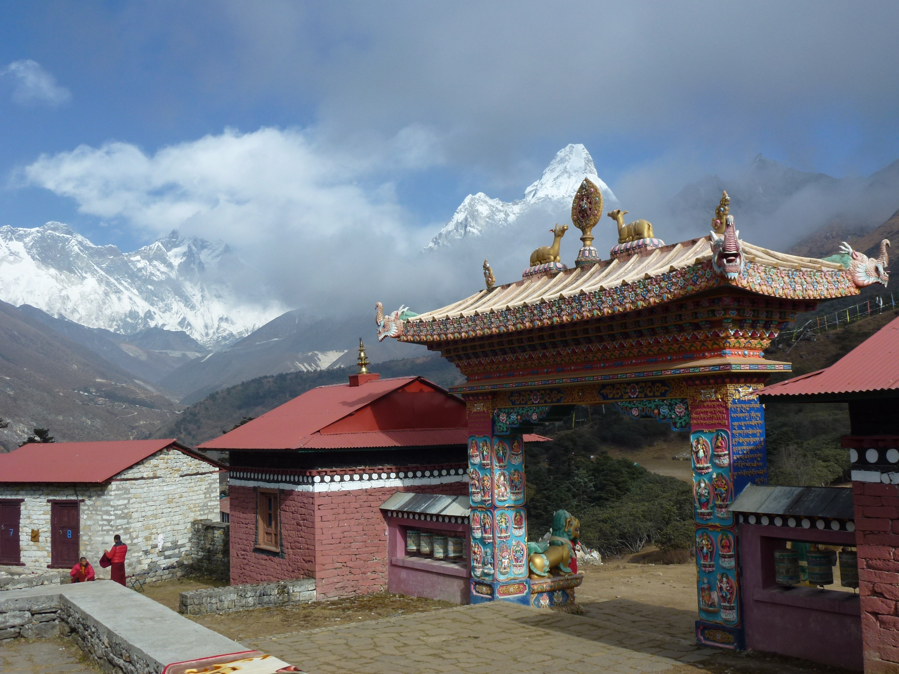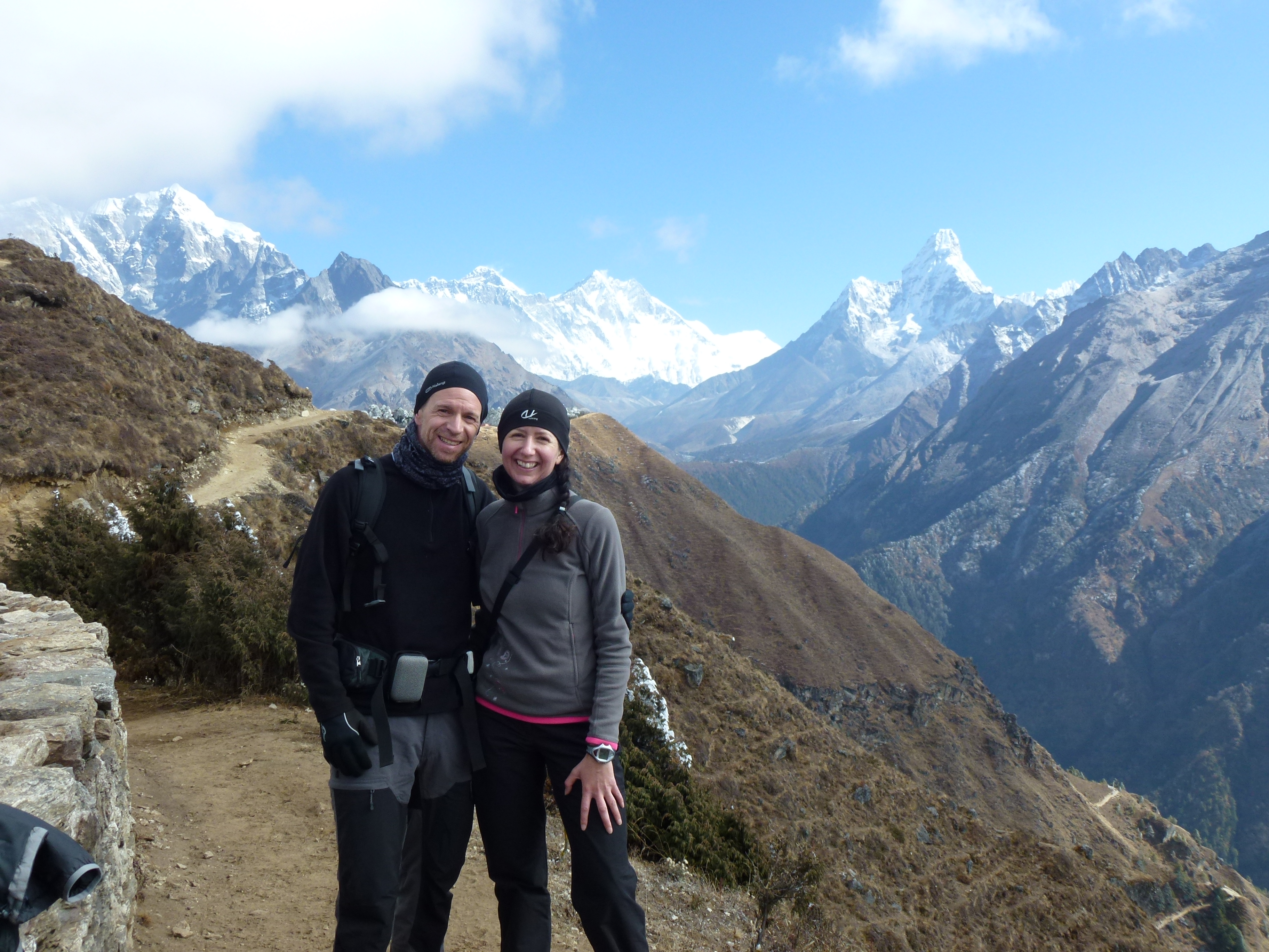 Und dann war es soweit. Im November 2011 machten wir uns auf den Weg nach Nepal zu einer dreiwöchigen Trekkingtour, die uns unter anderem auch ins Everest-Basislager führen sollte. Am achten Tag unserer Trekkingtour, die wir in Jiri, einem Ort etwa 170 km östlich von Kathmandu, starteten, präsentierte sich der Everest das erste Mal in seiner ganzen Herrlichkeit. Nur wenige Höhenmeter oberhalb des quirligen Ortes Namche Bazaar und nach fünf ungemütlichen Regentagen mit dichten Wolken, klarte es für einen Moment zumindest so lange auf, dass wir einen kurzen Blick auf den Berg der Berge erhaschen konnten. Wie soll ich es beschreiben, es war eine Art stille Ehrfurcht, die mich bei seinem Anblick erfüllte. Zugleich hatte dieser Moment auch etwas Unwirkliches: da steht er nun, der Berg, der von den Tibetern „Chomolungma“ genannt wird, was so viel bedeutet wie „Muttergöttin der Erde“ und ich bin so nah dran. So nah, dass ich seine Anziehungskraft förmlich spüren und den Blick lange nicht abwenden konnte. Zumindest so lange, bis sich die Wolkendecke wieder schloss und der Zauber von einer Sekunde zur nächstn vorüber war. Und so fieberte ich dem Tag entgegen, in dem wir endlich das Everest-Basislager, dem nach meinem Empfinden sicherlich magischsten Ort unserer Reise auf einer Höhe von etwa 5.300 m, erreichen sollten.